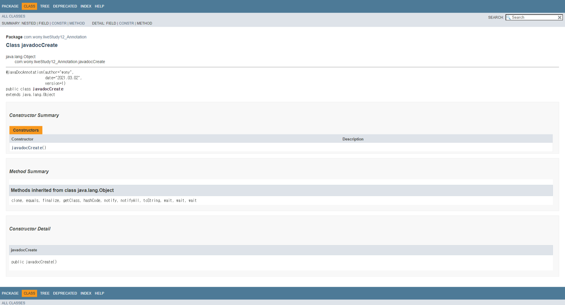 @javaDocAnnotation(author = "wony",date = "2021.03.02",version = 1)