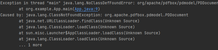 - 실행. jar에 lib이 포함되지 않았기 때문에 5. 실행 코드 - 인스턴스 생성 부분에서 NoClassDefFoundError 가 발생