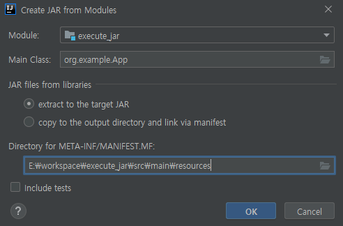 - src/main/resources로 생성을 해야 MANIFEST에 작성한 MainClass가 읽힌다.